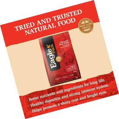 Join The Eagle Pack. They pride themselves on up keeping the following values in everything they do. The Eagle Pack Natural Dry Large Breed Dog Food is a sumptuous recipe made from chicken and pork.